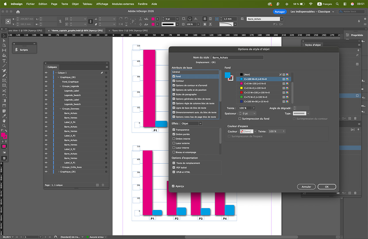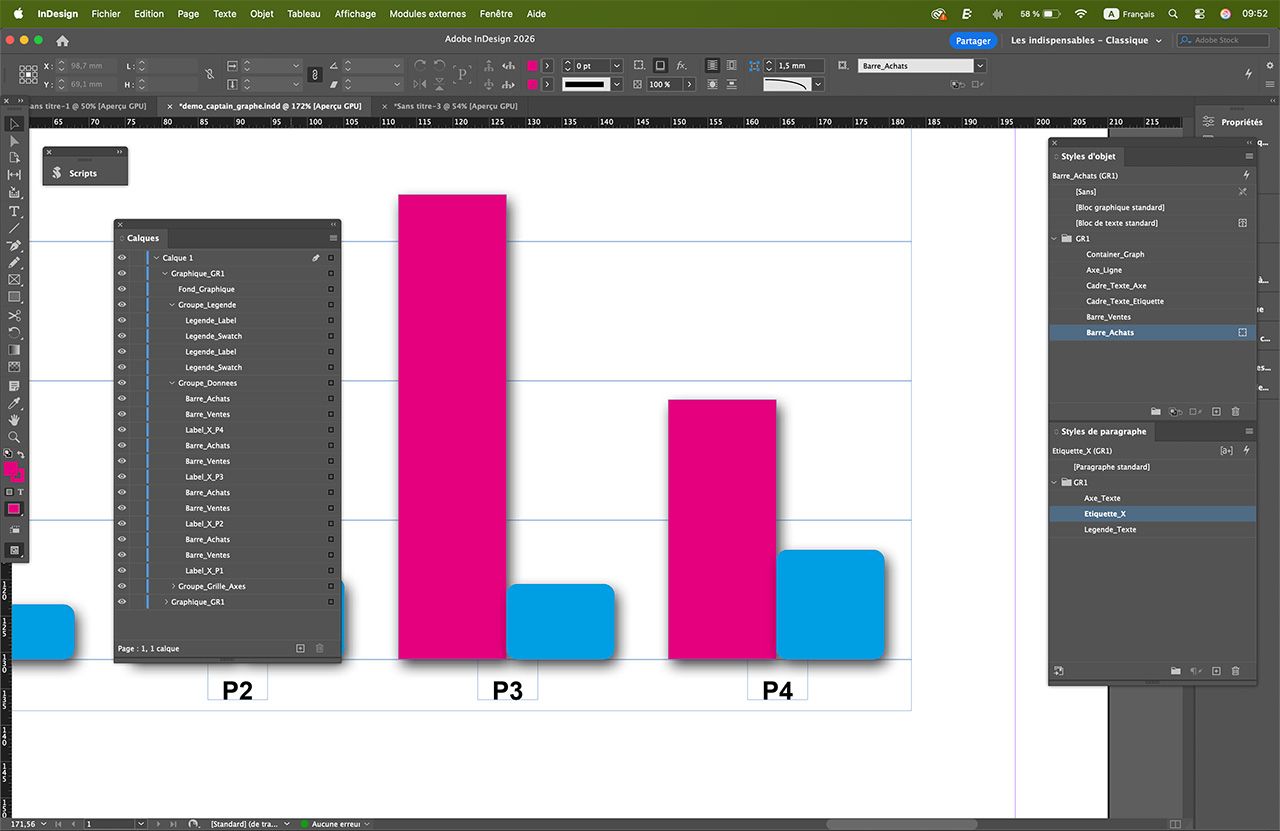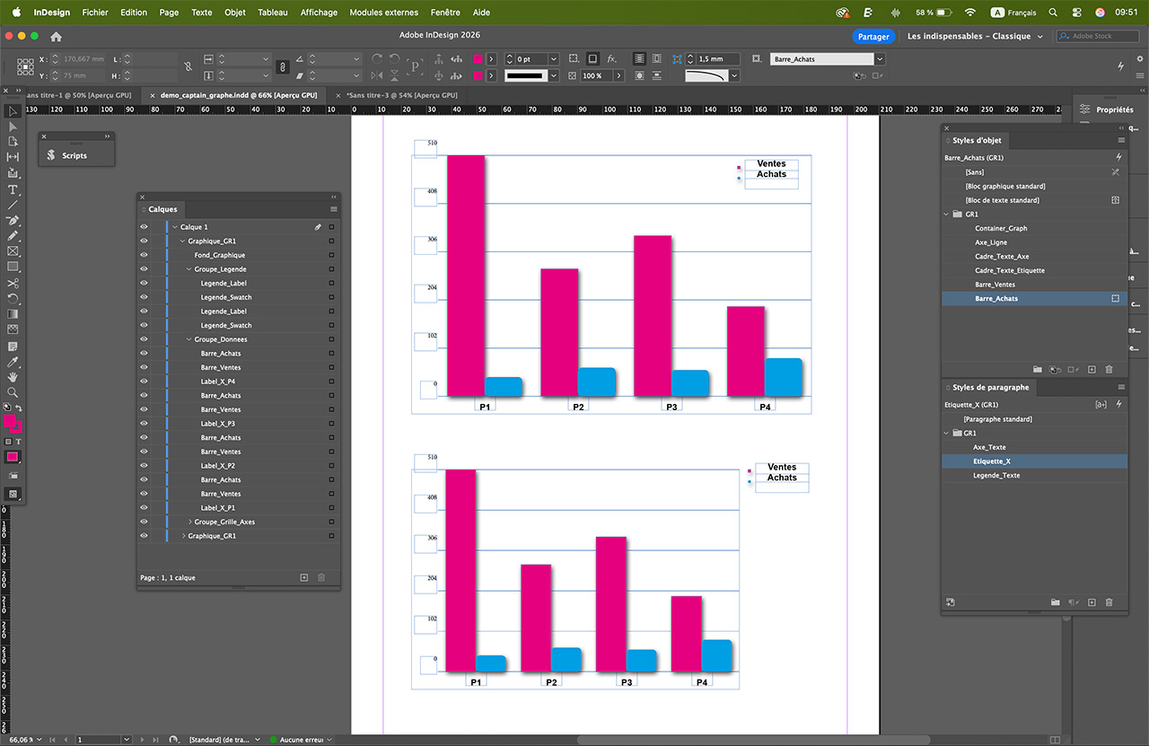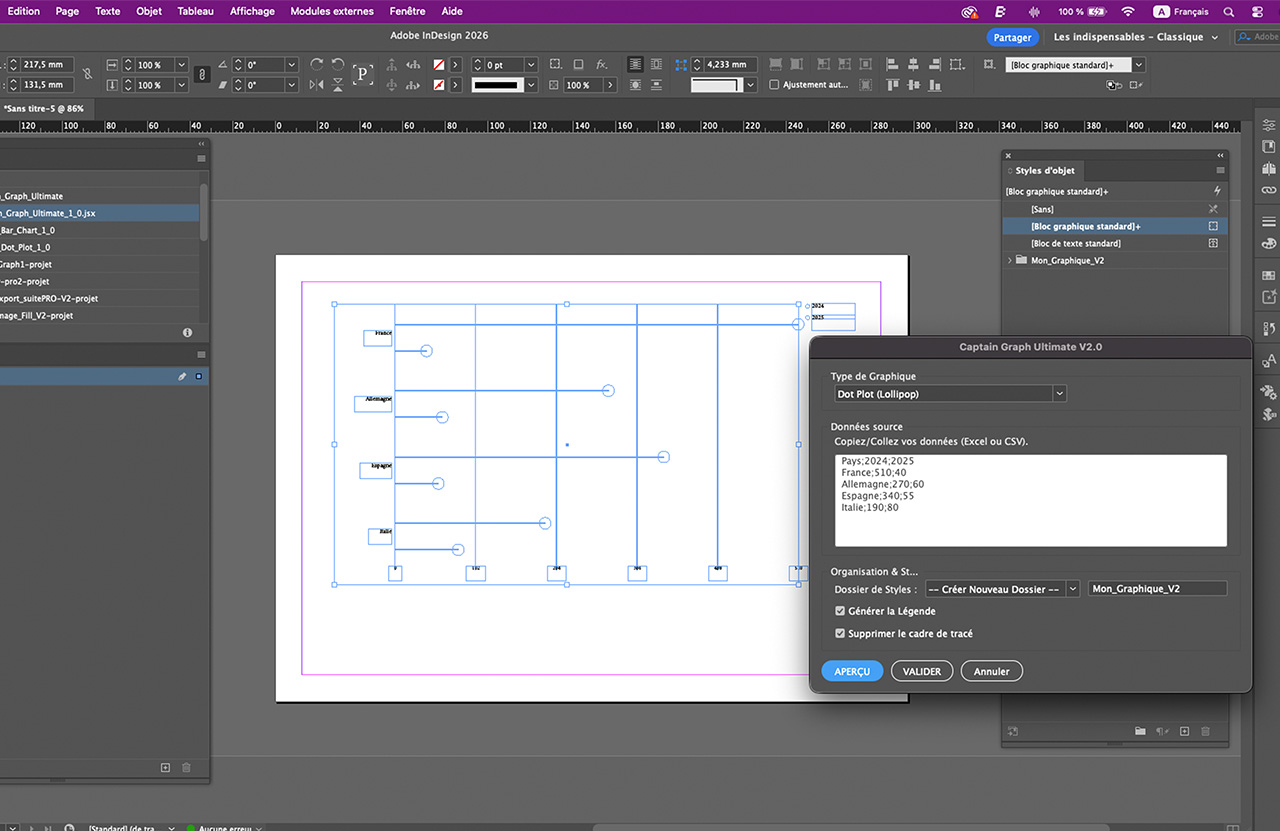 Une solution en deux version : Captain Graph Builder (version Histogramme seul) et le Pack Captain Graph Ultimate (Interface unifiée et 4 types de graphique dans un seul script pour Indesign)