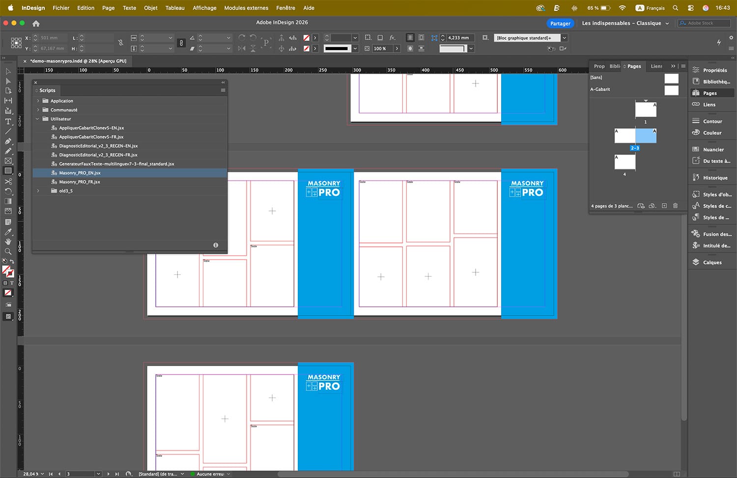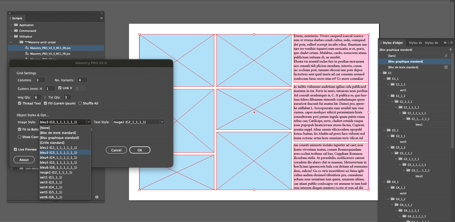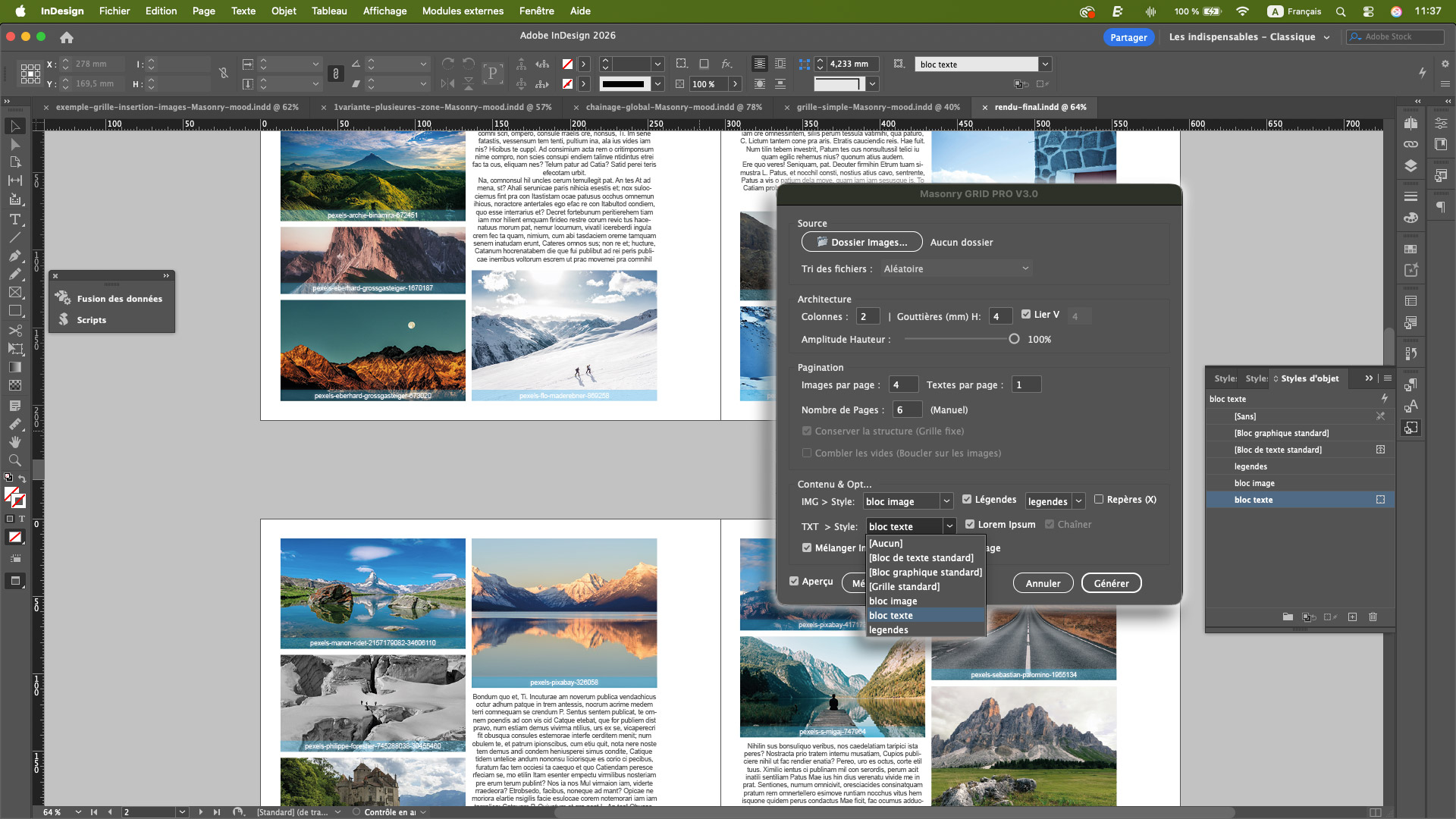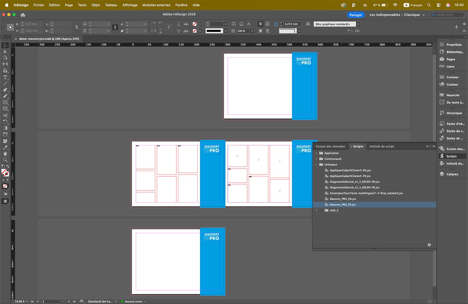 Masonry PRO complète les outils natifs d’InDesign en proposant :